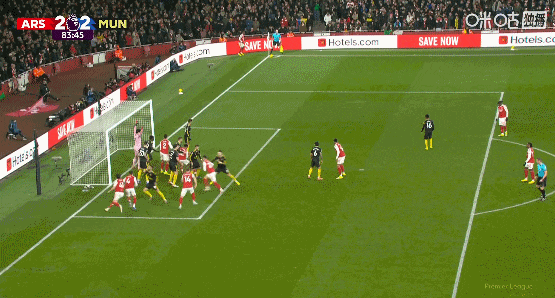 第84分钟,阿森纳再度利用角球拯救球队,萨卡助攻,梅里诺禁区混战中扳平比分!阿森纳2比2追平!
